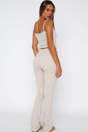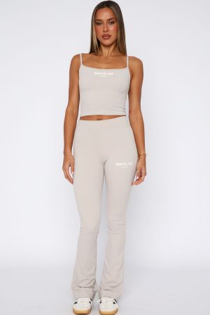 Cute girl fit incoming – welcome the Offstage Flare Pants in Moon! Features thick waistband. White Fox text side front. flare pant fit and stretch fabrication for an easy slip on and off. Complete the look with the matching Offstage Fitted Baby Tee Moon for a fit we love.