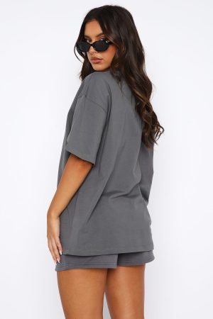 No need to steal your boyfriend’s clothes when you have the Offstage Oversized Tee in Volcanic. It is an oversized fit with slouch shoulders. round neckline. and a puff print graphic centre front. Match with the Offstage bike shorts or sweatpants! We also love this paired with your favourite White fox denim and fresh kicks.