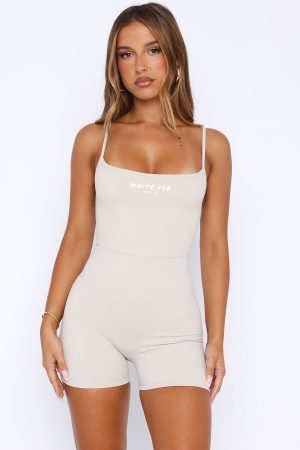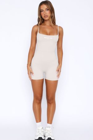 The Offstage Playsuit Moon is wish-list approved! Features thin adjustable straps. low scoop neckline. hugging silhouette. unlined material. puff print logo centre front. high stretch fabric for an easy slip on design and super soft fabrication. To complete the look. pair with your go-to sneakers and crew socks for a look we adore!