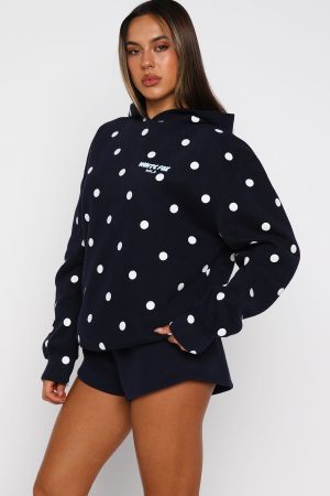 Designed for your downtime! The Offstage Printed Oversized Hoodie in Navy Polka Dot brings easy comfort with an oversized fit. long sleeves. ribbed cuffs and hem. and a hood. Bold puff‑print White Fox text lands on the side front and centre back for a signature touch. Style it with the matching Offstage Printed Oversized Tee in Navy Polka Dot and your favourite denim for an effortless. cool combo.