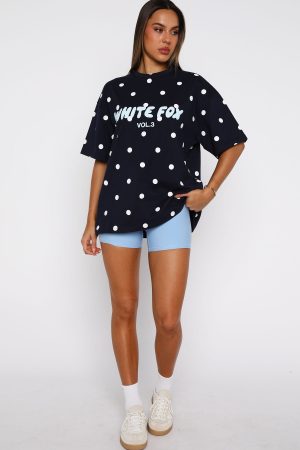Designed for your downtime. The Offstage Printed Oversized Tee in Navy Polka Dot features a relaxed silhouette. roomy short sleeves. and drop shoulders. A classic crew neckline anchors the look. while the puff‑print White Fox text adds subtle flair. Pair it with the matching Offstage Printed Oversized Hoodie in Navy Polka Dot and your favourite denim jeans for an easy. cool look.