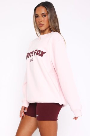 The Best Just Got Better! Your new favourite sweater has arrived! The Offstage Sweater in Cupcake features a high scooped neckline. ribbed neckline. cuffs and hem. puff print logo centre front and super soft fleece lining for extra comfort. Complete the tracksuit set with the Offstage Sweatpants.