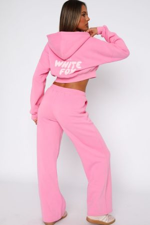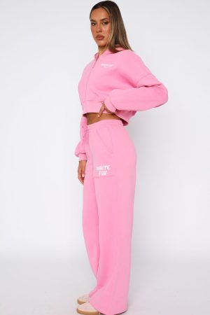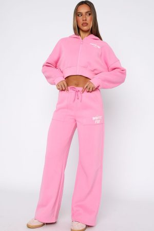 Comfort mode: activated. The Offstage Wide Leg Sweatpants Bubblegum feature a high elasticated drawstring waistband. elasticated ankles. side pockets. soft fleece fabric for extra comfort. wide leg design and puff print logo on side of leg. Team with the matching Offstage Zip Hoodie for a look we are obsessed with!