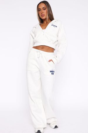 Comfort mode: activated. The Offstage Wide Leg Sweatpants Mineral Grey features a high elasticated drawstring waistband. elasticated ankles. side pockets. soft fleece fabric for extra comfort. wide leg design and puff print logo on side of leg. Team with the matching Offstage Zip Hoodie for a look we are obsessed with!