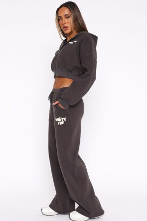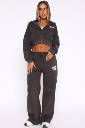 Comfort mode: activated. The Offstage Wide Leg Sweatpants Shadow features a high elasticated drawstring waistband. elasticated ankles. side pockets. soft fleece fabric for extra comfort. wide leg design and puff print logo on side of leg. Team with the matching Offstage Zip Hoodie for a look we are obsessed with!