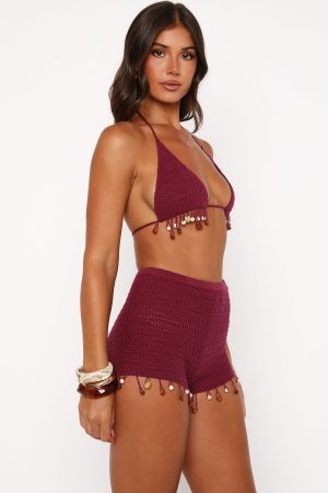 Looking for a desert. chic vibe? We’ve got you covered with the One More Time Top Berry features a halter neck design with self tie strap. crotchet material. front beaded hem design and back self tie strap. We love this paired with the matching One More Time Shorts Berry!