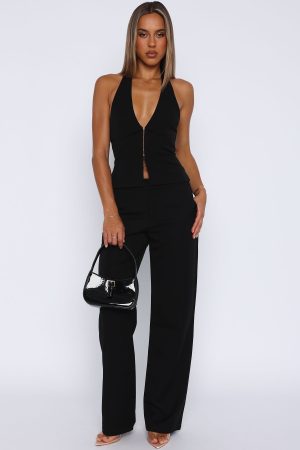 Channel office siren vibes in the Only Acting Pants Black. Features a front hidden zipper and clasp closure. thick waistband. front pockets. unlined fabric and straight leg fit. For the ultimate matching moment style with the Only Acting Top!