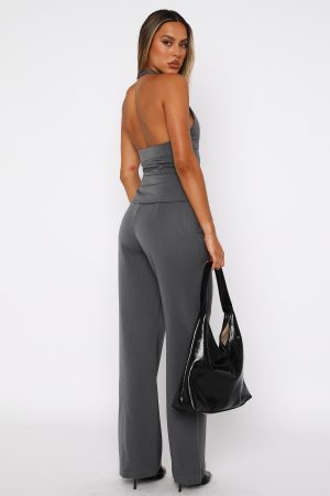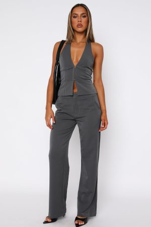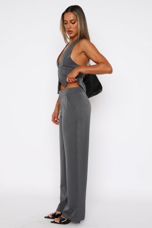 Channel office siren vibes in the Only Acting Pants Charcoal. Features a front hidden zipper and clasp closure. thick waistband. front pockets. unlined fabric and straight leg fit. For the ultimate matching moment style with the Only Acting Top!