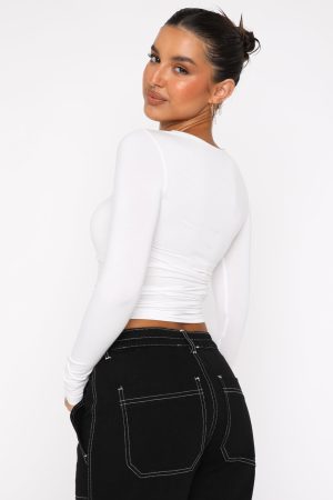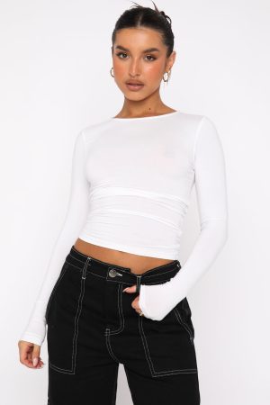 The Only For Tonight Long Sleeve Top in White is the basic your wardrobe is waiting for. This top is fitted with long sleeves and soft. stretch jersey fabric. Pair with your favourite pair of White Fox Denim Jeans and gold hoops for an elevated everyday look!