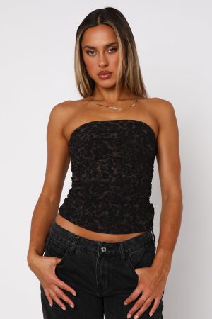 Go straight on the best dressed list with the Ooh La La Strapless Top Leopard. Features a strapless design. gel grip on bust. ruching detail on sides. invisible side zipper and clasp. Complete the fit with low waisted pants and a mini shoulder bag!
