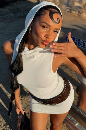 It’s still brat season….The Out Of My Head Knit Mini Dress Off White features a hooded design. high cut neckline. sleeveless. unlined. stretch material for an easy slip on design and mini length. Pair with cowboys boots and layered gold accessories for a desert-approved fit!