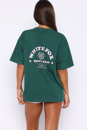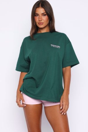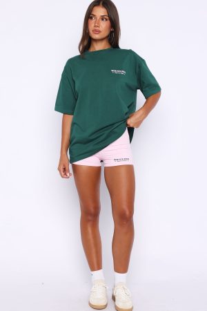 Outfit repeating until further notice. The Outfit Of The Day Oversized Tee Forest Green features a ribbed crew neckline. relaxed drop shoulder design. breezy short sleeves an over sized silhouette. Finished off with a White Fox logo text side front and centre back. Pair with the matching Outfit Of The Day Bike Shorts for an outfit worthy of stares!
