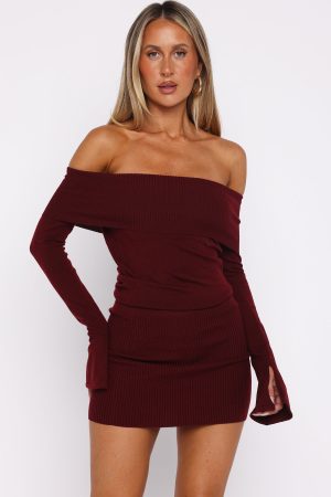 The Parental Guidance Knit Mini Dress in Burgundy is a must-have for cooler nights! Features a strapless neckline with grip tape. fold-over fabrication on bust. long sleeve with split cuff detailing and elastic waistband for a cinched fit. Style this fit to a tee with heels and simplistic jewellery for an elegant look we love!