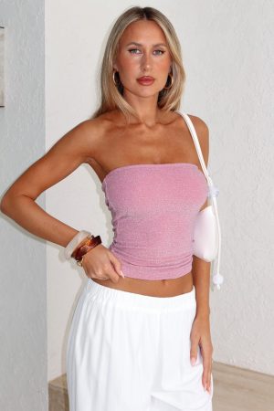 Slip into effortless glamour with the Passing By You Strapless Top Pink! The elasticated bust keeps everything secure while you move. and the stretch fabric hugs you in all the right places! Embellished with glitter. this champagne beauty catches the light from every direction. Perfect for nights when you want to sparkle without the fuss. Simple to style. impossible to ignore.