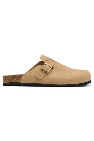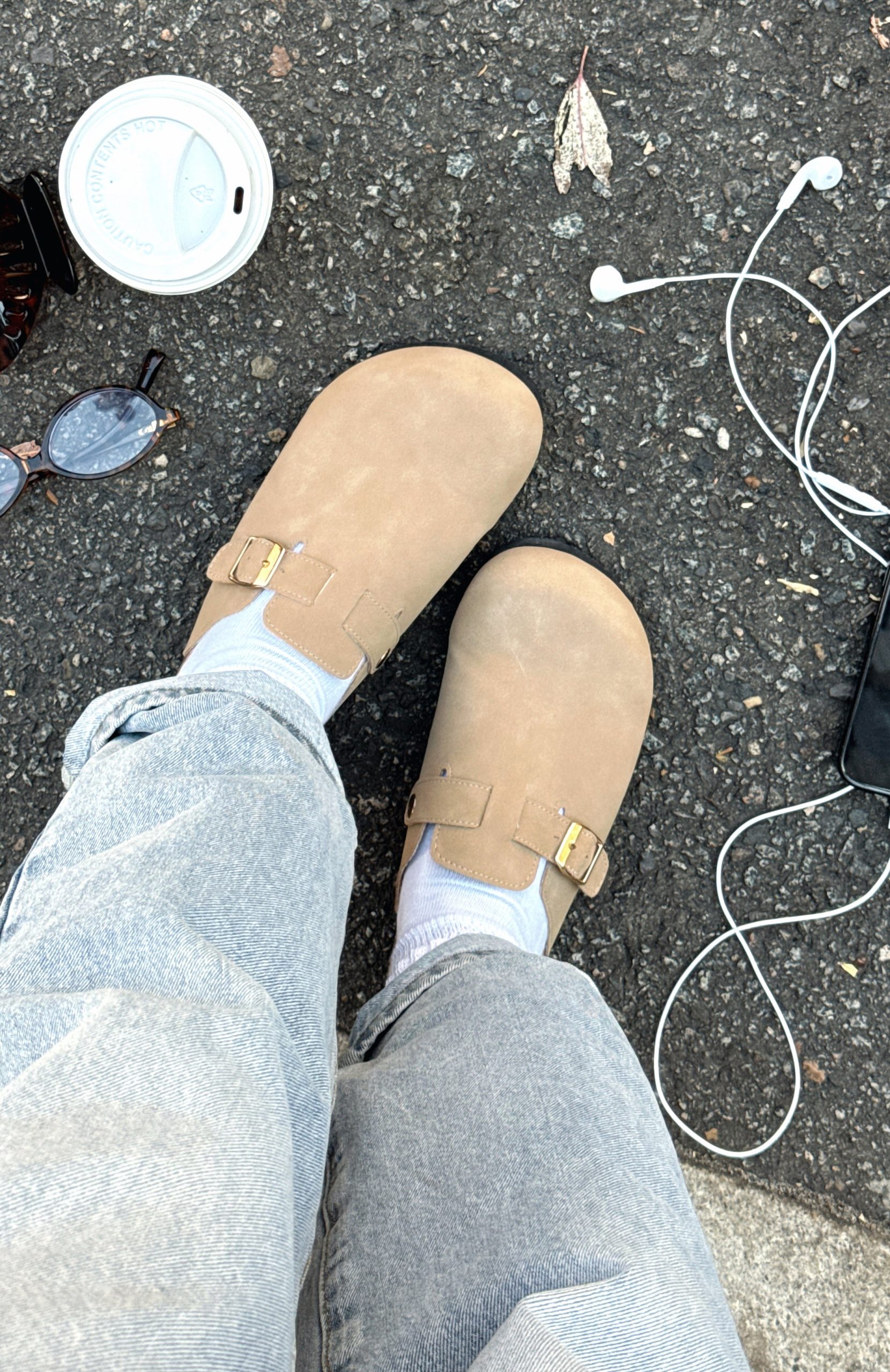 Meet the Penelope Flats in Taupe. your new everyday go-to. Designed with a closed round toe. chic buckle detailing across the front. a sturdy thick sole. and an open round heel for easy slip-on style. Pair them with everything from denim to a relaxed midi for instant wearable polish.