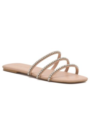 Elevate your look with the Peppi Sandals in Nude. Feminine yet bold—featuring a chic square open toe. sculpted round heel. and three rhinestone-detail straps that make a subtle statement. Nude never looked so effortlessly elegant.