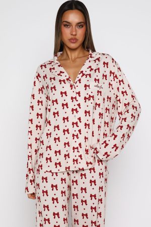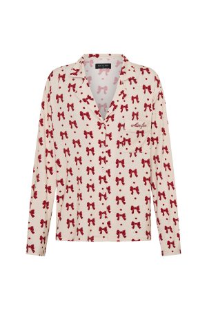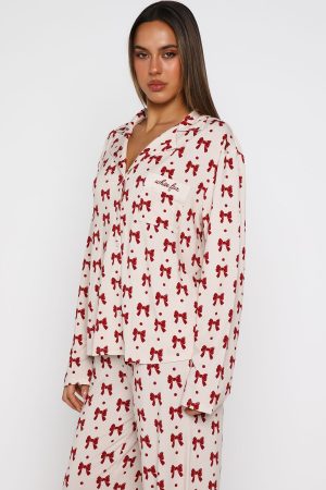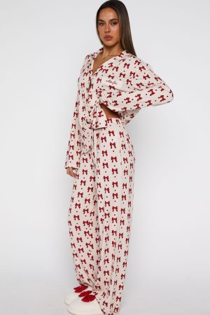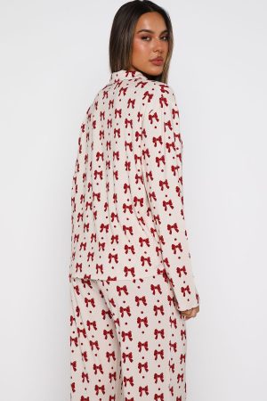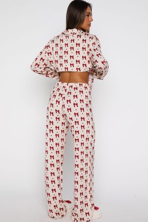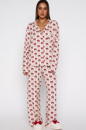 Snuggle into the season’s most irresistible loungewear: the Pillow Talk Long Sleeve Pyjama Set in Bow Bliss. This set features buttery-soft. high‑stretch fabric. a lapel neckline and front pocket with embroidered White Fox . With long sleeves. a front button closure. and a comfy elasticated waistband and lined. it’s both effortlessly practical and beautifully tailored. Pair it with your go-to Uggs for an effortlessly chic look as you curl up and drift off in style.