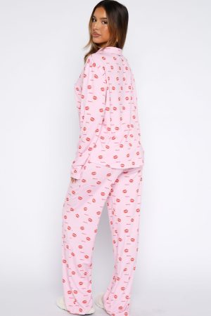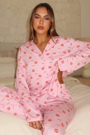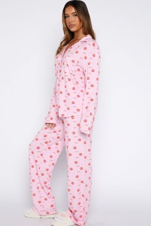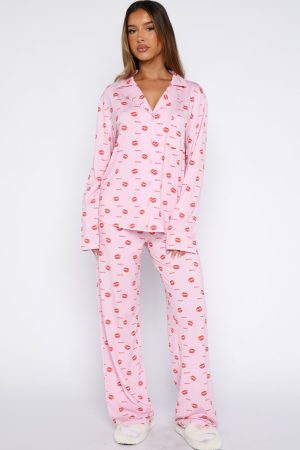 Wrap yourself in winter warmth and cottage-core charm with the Pillow Talk Printed Long Sleeve Pyjama Set in Strawberry Kisses. Crafted from ultra-soft. high‑stretch fabric. this set features a cozy collar-neck button‑up top and elasticated-waist pants with a lined interior for next-level comfort. Pair with your go-to uggs and sleep tight!