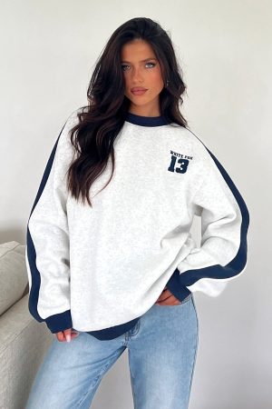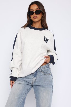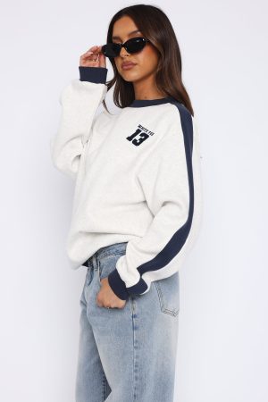 Max out your sweater collection with the Play For It Oversized Sweater Grey Marle. This oversized sweatshirt has a high scooped neckline. ribbed neckline. cuffs and hem. embroidered logo side front and super soft fleece lining for extra comfort. Pair with bike shorts and sneakers for the perfect off-duty look!