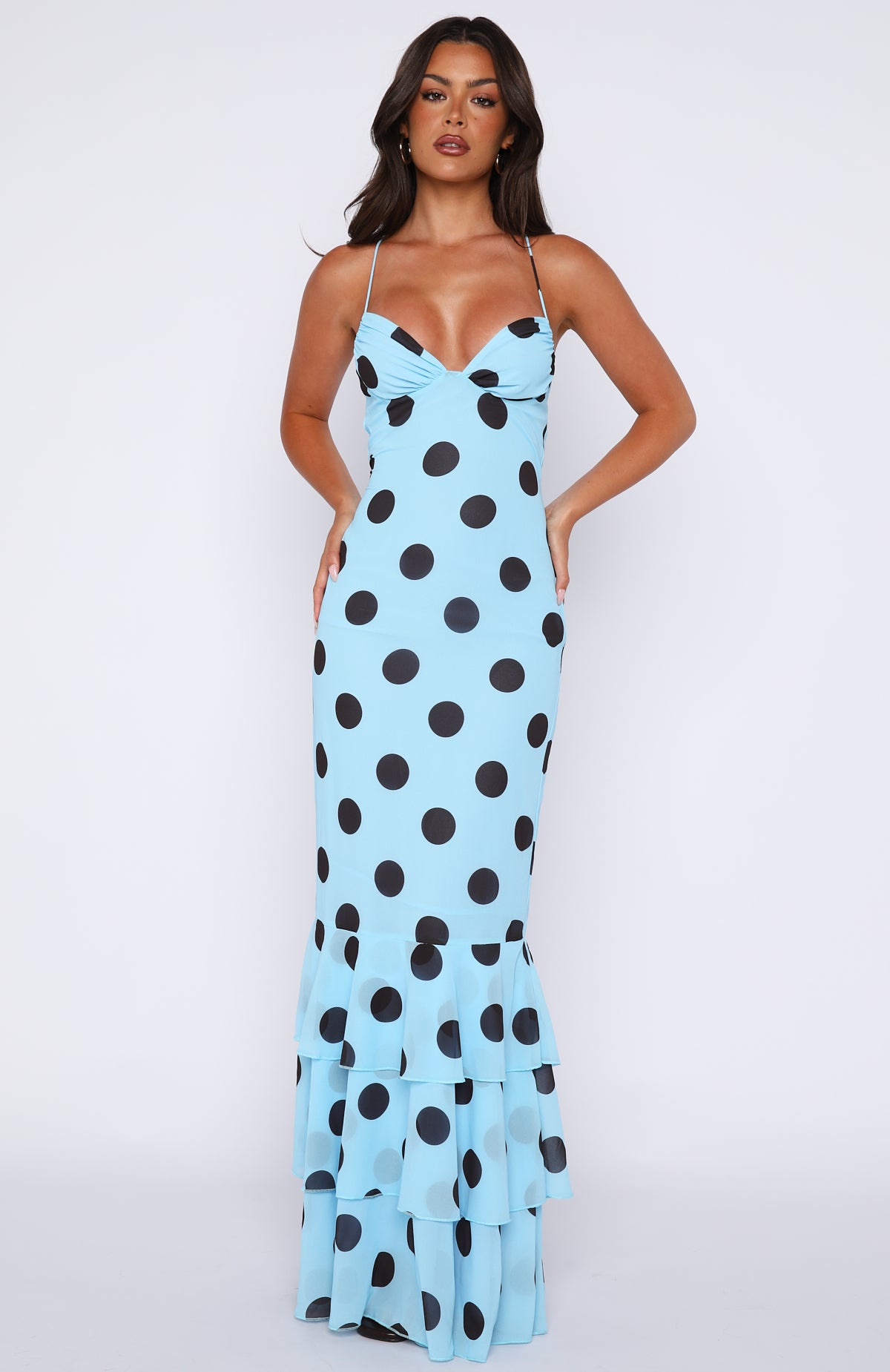 Power Ballad Maxi Dress Baby Blue/Choc Polka Dot