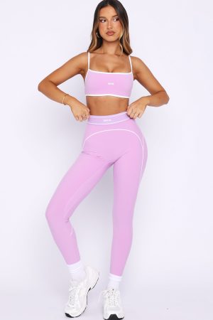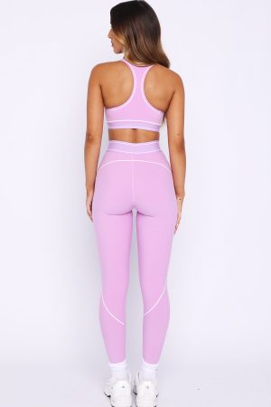 Cute and consistent in the Precision Leggings Orchid/White. Features a thick elastic waistband with WFA initials at centre front for a signature touch. piping across the front. back and down the left side for a elongated look. high-stretch fabrication. and a fitted silhouette that flatters. Style with the matching sports bra or crop for a coordinated. on-point look.