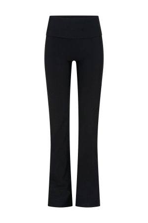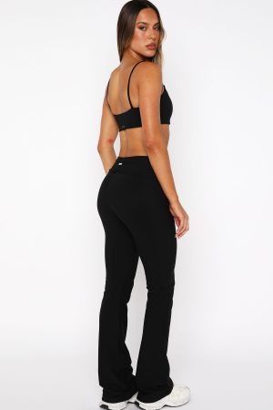Embrace your inner Pilates princess with the Progression Foldover Flare Leggings in Black. These leggings feature a thin elasticated waistband with a foldover design. The flared leg silhouette adds a touch of elegance. while the unlined. high-stretch fabrication ensures comfort. Finished with WFA initials at the center back. Style with the matching Session Crop Black and pilates grip socks for a look we love.
