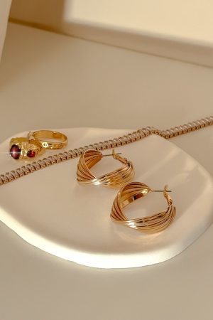 Dial up your beachside style with the Purnima Earrings in Gold. These effortlessly chic hoops boast a modern twisted design. feather‑light feel. and secure latch closures. Complement your sunlit moments in flawless fashion by pairing with your fav matching bikini.