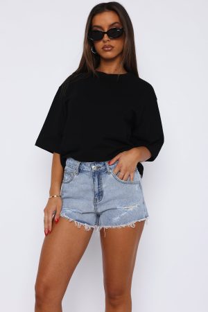 Give your everyday look some edge in the Push My Buttons Denim Shorts Mid Blue. These high waisted denim shorts are high waisted with button closure and zipper. 5 pocket design. frayed hemline. distressed fabric and belt loops. Complete the look with a cute crop top and sneakers and you’re ready for a day in the sun.