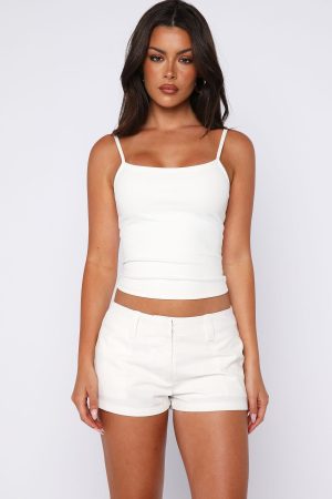 Our newest summer obsession! The Queen Vibes Linen Short in White features a thick waistband with hidden zipper and hook and eye closure. belt loops. booty short style. two side pockets and lined. Style with a white crop and your favourite pair of sunglasses for that IT girl look.