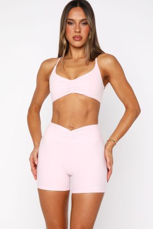 Elevate your workout wardrobe with the Radiate High Waisted Shorts in Bubblegum. These shorts feature a thick. high-waisted waistband with center ruching detailing. providing a flattering fit. Crafted from unlined high stretch fabrication. these shorts are finished off with WFA initials at the side front. Complete the look with a matching Ballet Pink crop or bra for a coordinated gym ensemble.