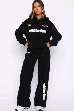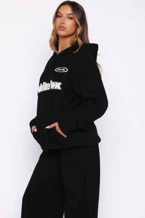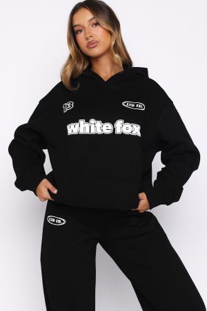 Studying has never looked cuter in the Ready To Go Oversized Hoodie in Black! Features a hood. slouched shoulders. long sleeve with ribbed cuffs. ribbed hemline. softest fleece lining and signature puff print White Fox text and graphic centre front. Complete the look with the matching You’re Not Allowed Wide Leg Sweatpants Black.