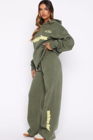 Studying has never looked cuter in the Ready To Go Wide Leg Sweatpants in Khaki! Features a thick elasticated waistband with drawstring tie. signature White Fox puff print text and graphic side front. wide leg design and the softest fleece lining. Team with the matching Ready To Go Baby Tee in Khaki for the comfiest set!