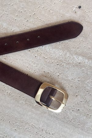 Your wardrobe just got its best supporting player. The Reed Belt in Chocolate/Gold features a flexible band that contours comfortably to your waist. pre‑punched holes. PU fabrication. and fitted with a gold plated hardware buckle.