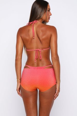 Bikini behaviour in the Reefside Bottoms Summer Sunset. Featuring a thin elastic waistband. soft shimmer fabrication and a fully lined. flattering boyleg cut. Style them with the matching bikini top and your favourite sunnies for an effortless. sun‑kissed vibe.