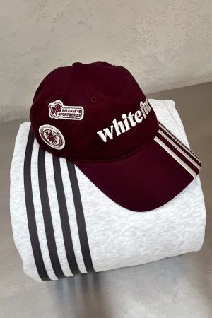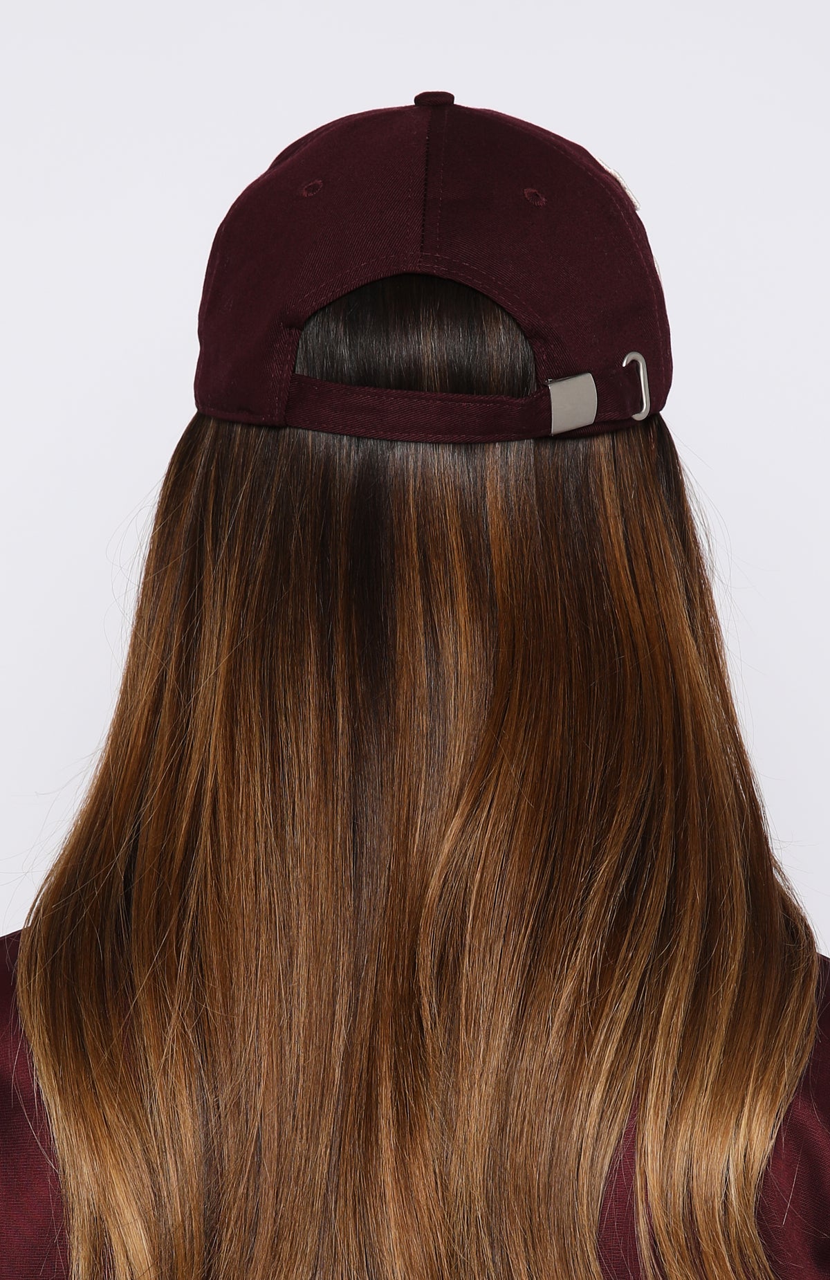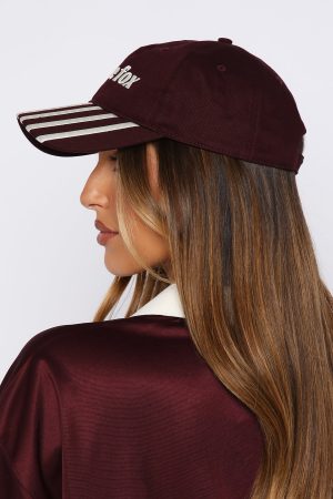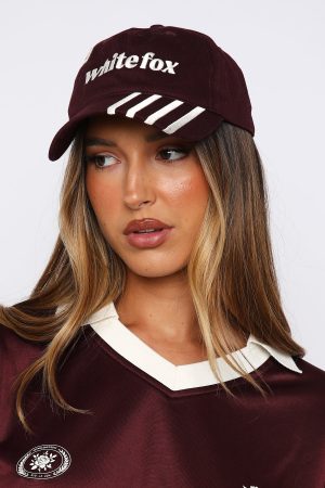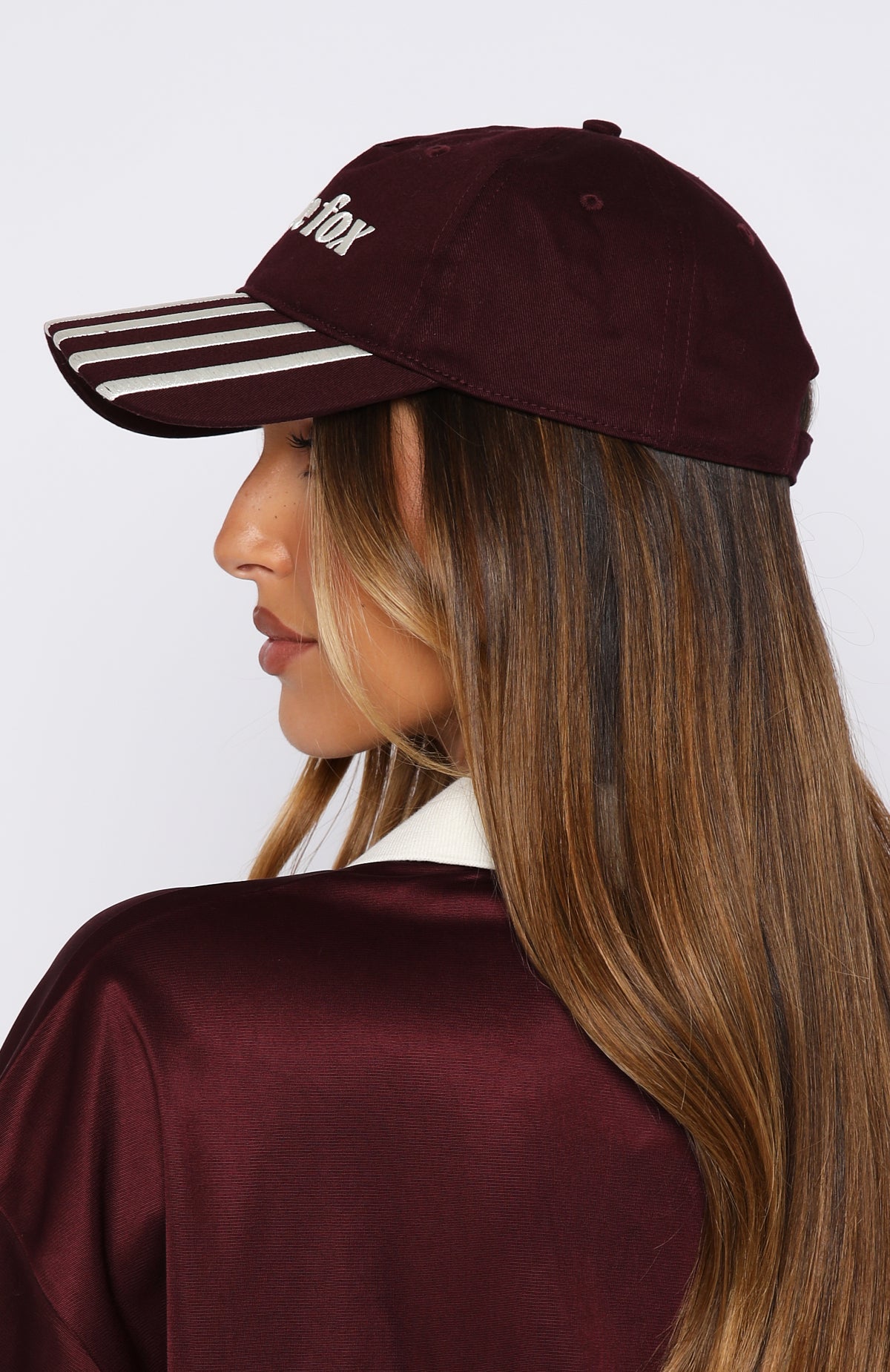 Where words fail. your fit speaks! Top it off with the Release 15 Janie Cap in Plum. Features a structured brim with embroidered stripe detailing. a metal clasp closure. bold White Fox text at the front. and finished off with stylish side patches. Style with a matching lounge set for an effortlessly cool. head-to-toe look that turns every outfit into a statement.