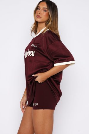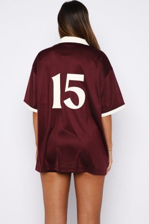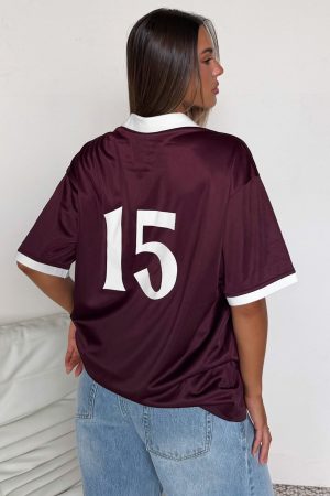 We followed our hearts and it led us to the Release 15 Janie Oversized Jersey in Plum. Features a V-neckline collar. oversized fit. short sleeves. printed White Fox text paired with rose graphic on the centre front. unlined lightweight fabrication. and a bold 15 graphic on the centre back. Style with the matching Release 15 Asalia Booty Shorts for an effortless. laid-back set that’s equal parts cool and comfortable.