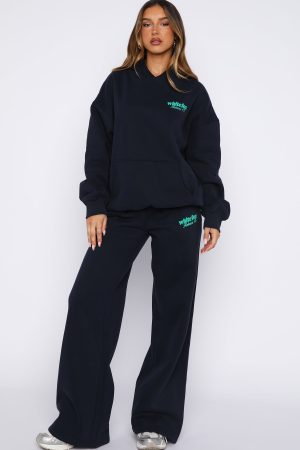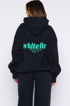 Cozy nights. crisp days in the Release 15 Kiana Oversized Hoodie Navy. Designed with a double lined hood. slouched shoulders and firm ribbed hems which round out an oversized silhouette. Featuring long sleeves. a roomy front pocket. and an unlined fleece interior. this hoodie delivers a cozy feel. Finished with White Fox puff print text side front. Style with the matching Release 15 Kiana Wide Leg Sweatpants.