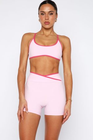 The Relentless Sports Bra in Marshmallow/Pink is the perfect staple for layering! Features thin adjustable straps. scoop neckline. removable padding. contrast colour trim detailing and minimal back design with cross over straps. Sculpt your body by pairing with the Stronger High Waisted Shorts 3 Marshmallow!