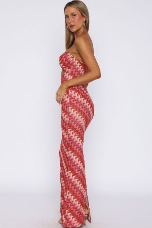 Looking cute has never been easier with the Rock Your World Strapless Maxi Dress in Berry! Features strapless neckline with gripe tape and knot detailing. cut out design centre front. back leg split for ease of walkability. invisible zipper with hook and eye closure centre back and lined.