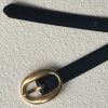 The Ron Belt Burgundy/Vintage Gold. Featuring PU fabrication. thin design and fitted with an oval. gold plated hardware buckle. Style with your go-to pair of jeans for a chic and effortless look!