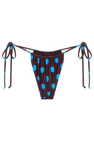 Catch all the beach vibes this season with the Rule Breaker Bottoms in Cocoa Blue Polka Dot. These lined. cheeky-cut bikini bottoms boast tie-up sides with luxe gold-plate accents and adjustable ruching in front and back for a customizable fit. Pair with any of our Cocoa Blue Polka Dot bikini tops for a seamless. sun-kissed look that’s vacation-ready.