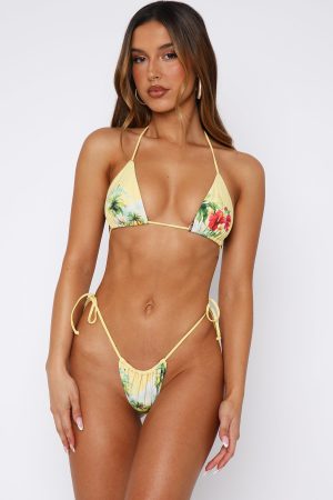 It’s all about cute swim this summer! The Rule Breaker Bottoms in Paradise Postcard is a lined. cheeky cut bikini bottoms have tie up sides with gold plate detail and adjustable ruching along front and back. To complete the look pair with one of our Paradise Postcard Bikini Tops for the perfect beachside look.