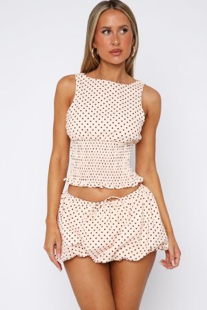 It’s a love story. baby just say yes… to the Runaway Heart Top Cream Polka Dot! Featuring a high cut neckline. thick shoulder straps. cropped length. elasticated waist detailing. lined and backless design with self tie strap. Style with the matching Runaway Heart Mini Skirt Cream Polka Dot for a look worthy of stares!