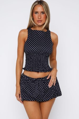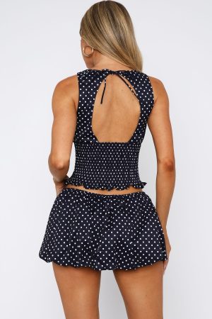 It’s a love story. baby just say yes… to the Runaway Heart Top Nay Polka Dot! Featuring a high cut neckline. thick shoulder straps. cropped length. elasticated waist detailing. lined and backless design with self tie strap. Style with the matching Runaway Heart Mini Skirt Nay Polka Dot for a look worthy of stares!