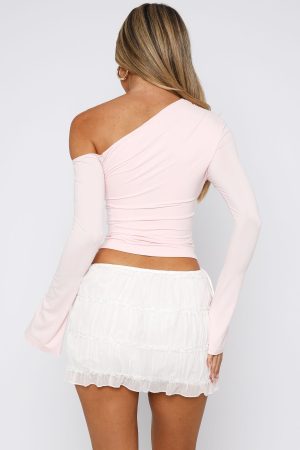 You’ll be unforgettable in the Said So Long Sleeve Top Baby Pink. Features a one shoulder design. long sleeve. fitted silhouette. semi-cropped and floral detailing. Style with low rise jeans or mini skirt for the perfect weekend look.