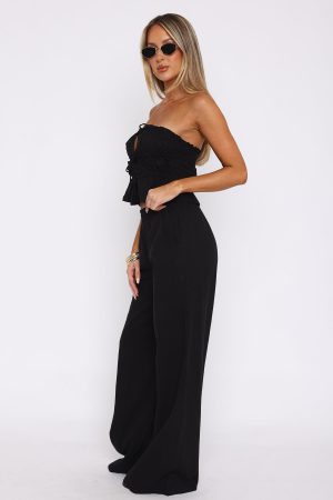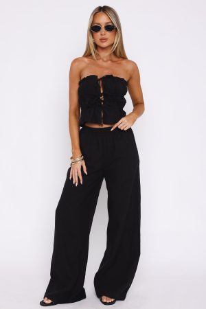 Designed to fit with ease. the Secret Society Pants Black will become your favourite. Featuring a high. elasticated waistband. side pocket design and lightweight. linen fabric. We love this paired with your go-to bikini and flats for a day in the sun!
