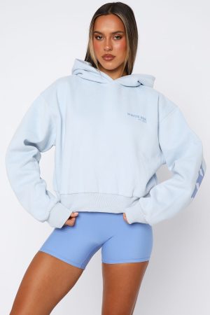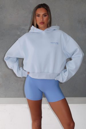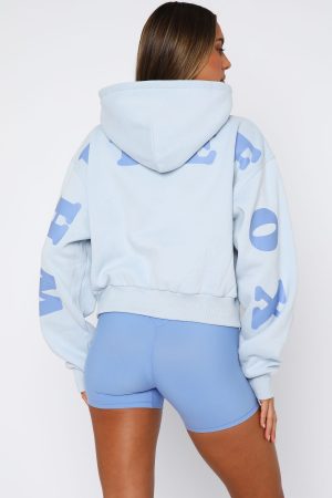 Feeling like sporty spice? The Serving Up Cropped Hoodie Baby Blue features an oversized fit with drop shoulders. hooded design. ribbed cuffs and hem. cropped fit and print logo detailing side front and back. Pair with lounge shorts and sneakers for a cute weekend casual vibe.