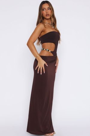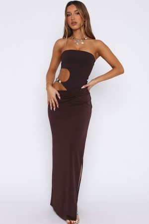 Embrace your inner goddess in the She’s A Goddess Maxi Dress in Chocolate! Features strapless neckline. cut out design on waist with beaded detailing and high side leg split for a glimpse of the leg. Complete the look with statement heels and jewellery for a look we love!
