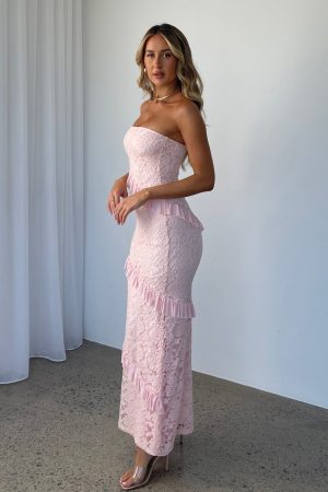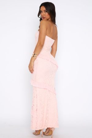 Turn heads in the She’s A Masterpiece Lace Maxi Dress in Pink. Featuring a strapless fit. asymmetric mesh frill detailing. lace fabric. lined. maxi length and soft. stretch fabric. Complete the look with gold accessories and perspex heels for a look that will have all eyes on you!