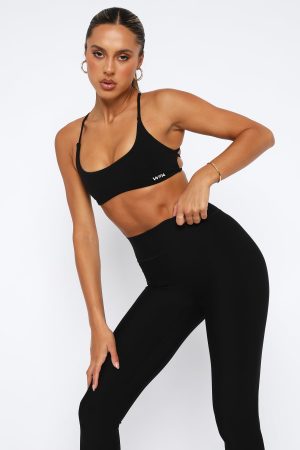 Elevate your gym-drobe with the She’s Healthy Sports Crop in Black. Features scoop neckline. thin straps. fitted design. criss-cross back design. lined. removable padding and custom patch detail. Pair with one of the matching Go Getter High Waisted Leggings or Keep Up High Waisted Shorts for a look we are loving!